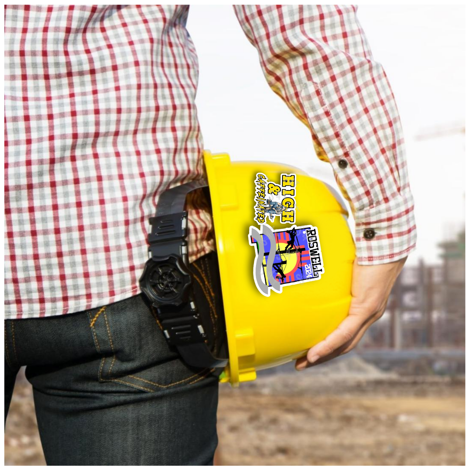 Lineman High and Caffeinated hard hat sticker