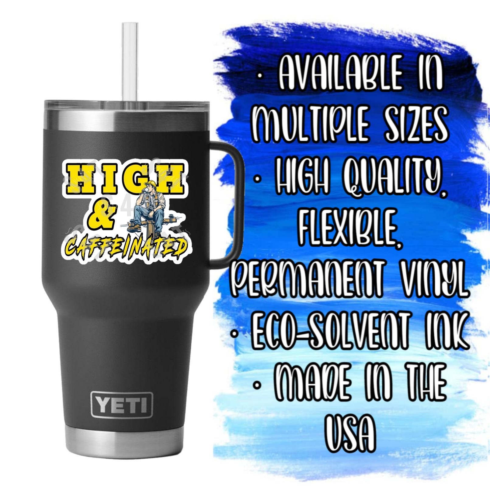 High & Caffeinated Lineman Sticker Hard Hat Decal Blue Collar Badge